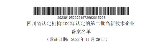 以下为《四川省认定机构2022年认定的第二批高新技术企业备案名单》的通知文件。。。。